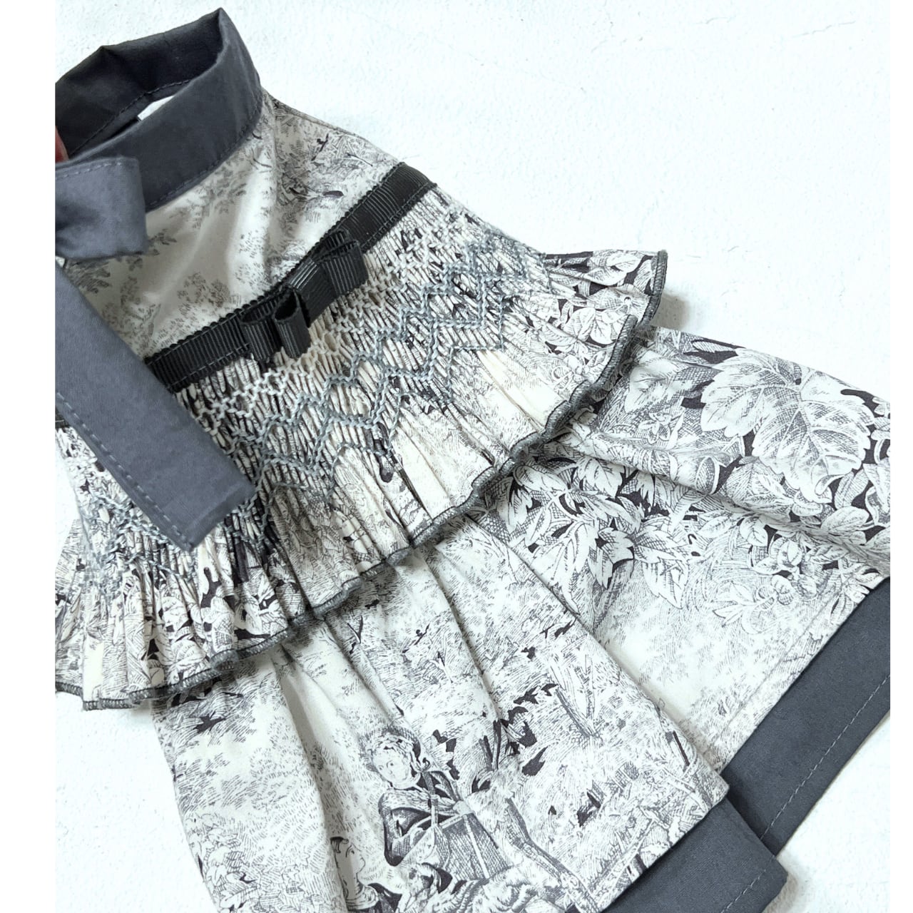 スモッキング刺繍と布帛で仕立てる犬服づくりを、動画で丁寧に学べるコースです。