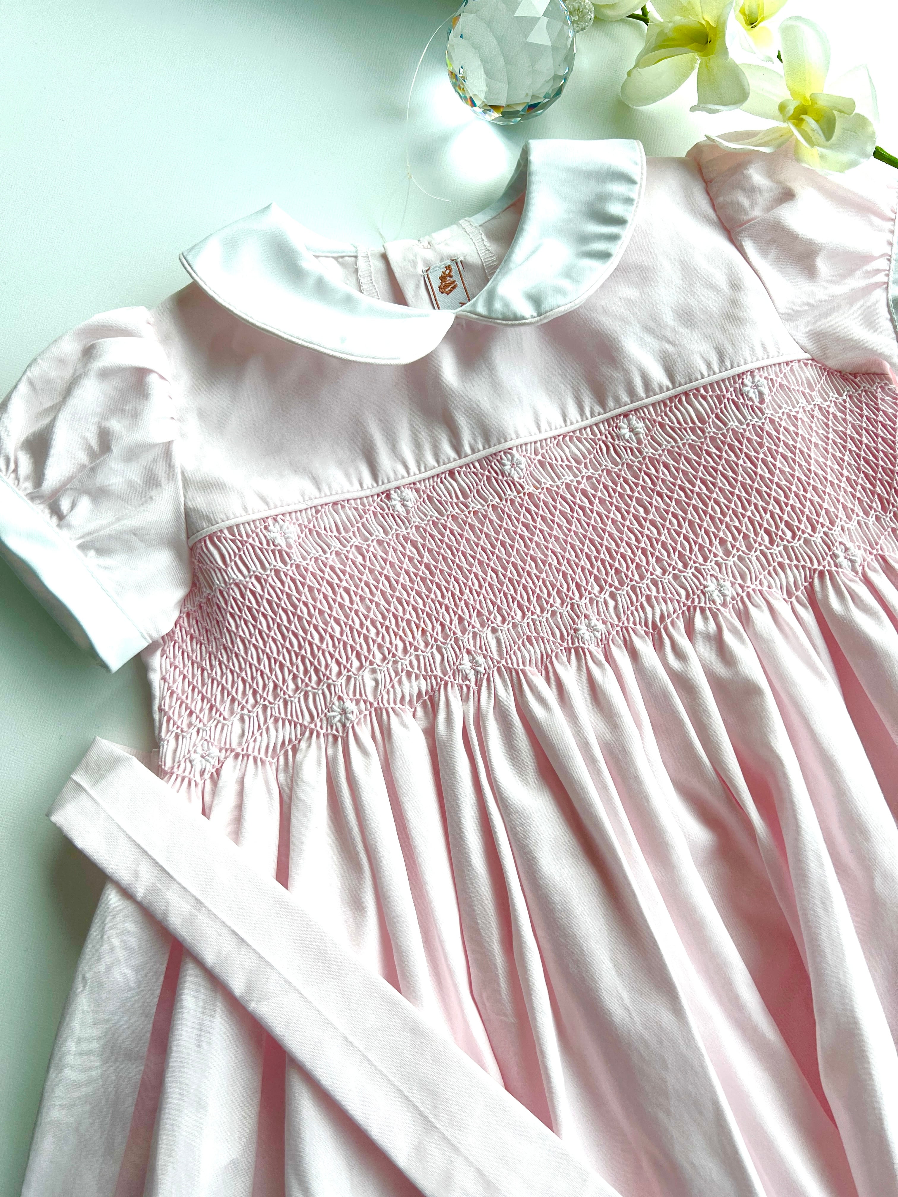 繊細なスモッキング刺繍が施された、上品で愛らしいワンピースです♡